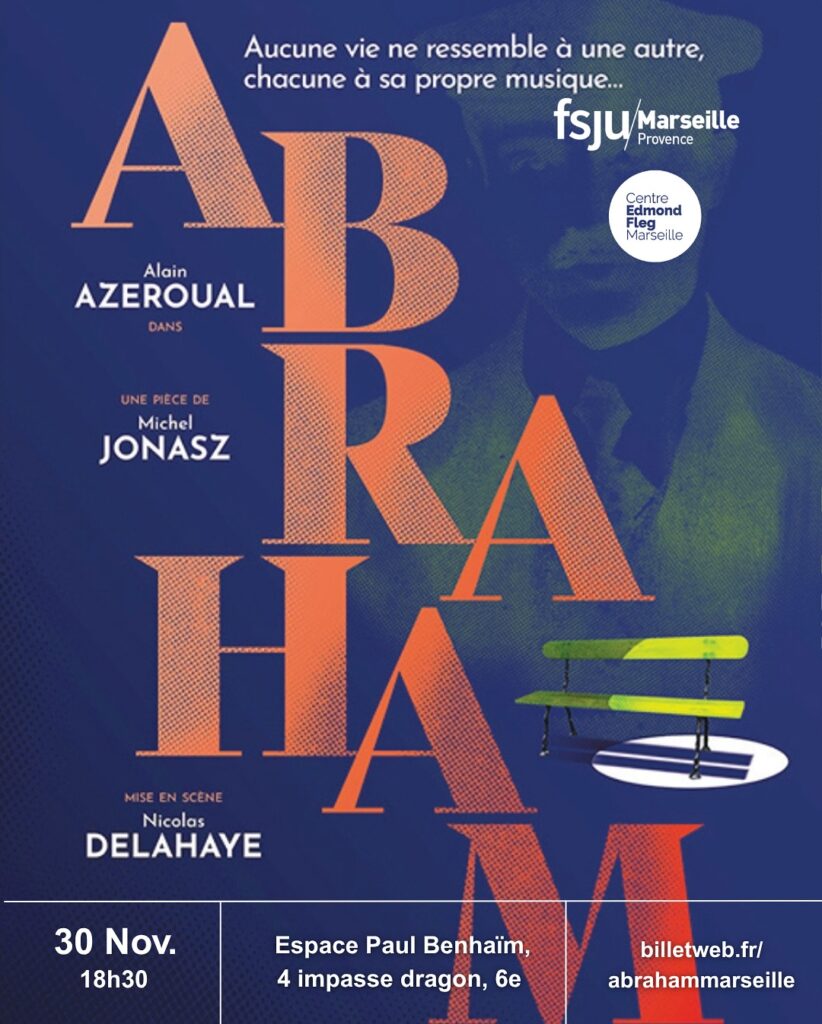 Dans cette pièce écrite par Michel Jonasz, Alain Azéroual incarne le grand-père maternel de Michel Jonasz, juif polonais, Abraham, qui juste avant de mourir va se souvenir de sa vie : son enfance, le départ de Pologne, l’arrivée en Hongrie, la rencontre avec sa femme, leurs enfants, l’amitié, les joies, les peines… jusqu’à l’exil et la déportation.